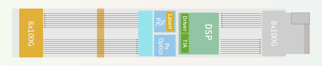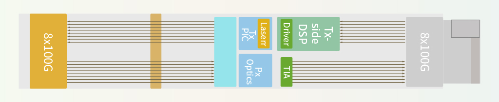 No DSP inside the module; all signal processing is handled by the host SerDes.